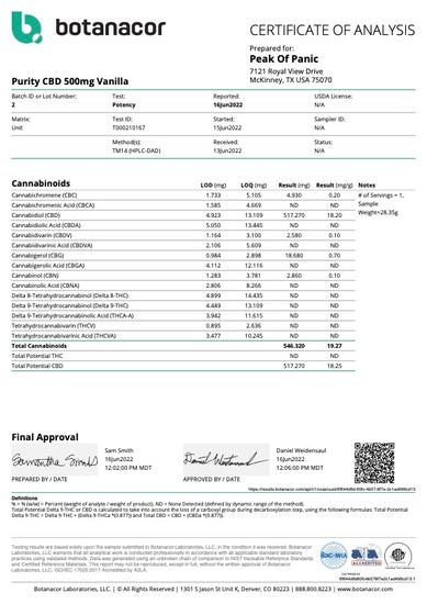 Purity Premium CBD Oil – 100% THC-Free (500 MG) Vanilla Flavor