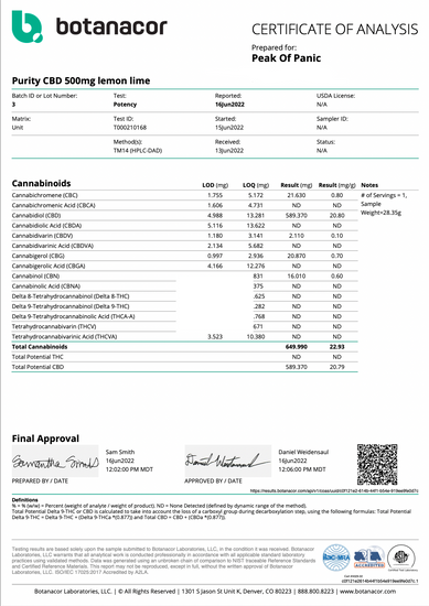 Purity is the one thing that has been my saving grace to kickstart my panic attack recovery. Purity has now been an anxiety savor so many of you guys struggling. It has been what helped me from having a panic attack going on almost 5 years now and I hope to help you the same! All Purity products are third party lab tested. Attached are recent testing on current shipment.